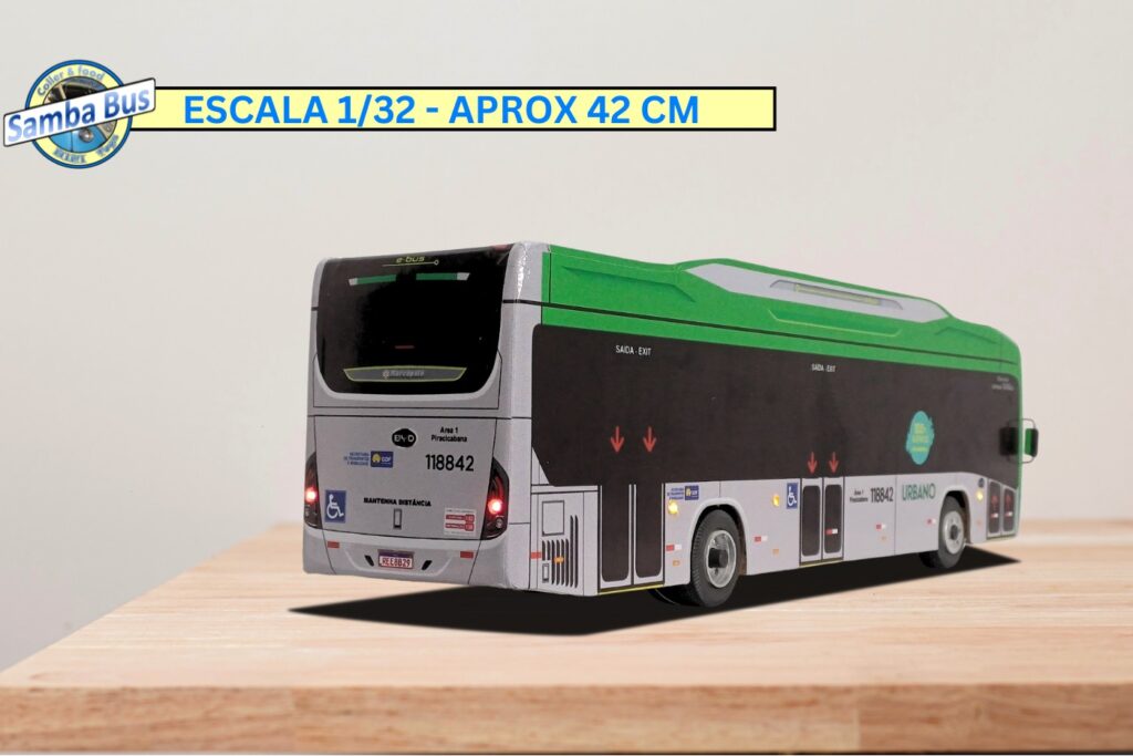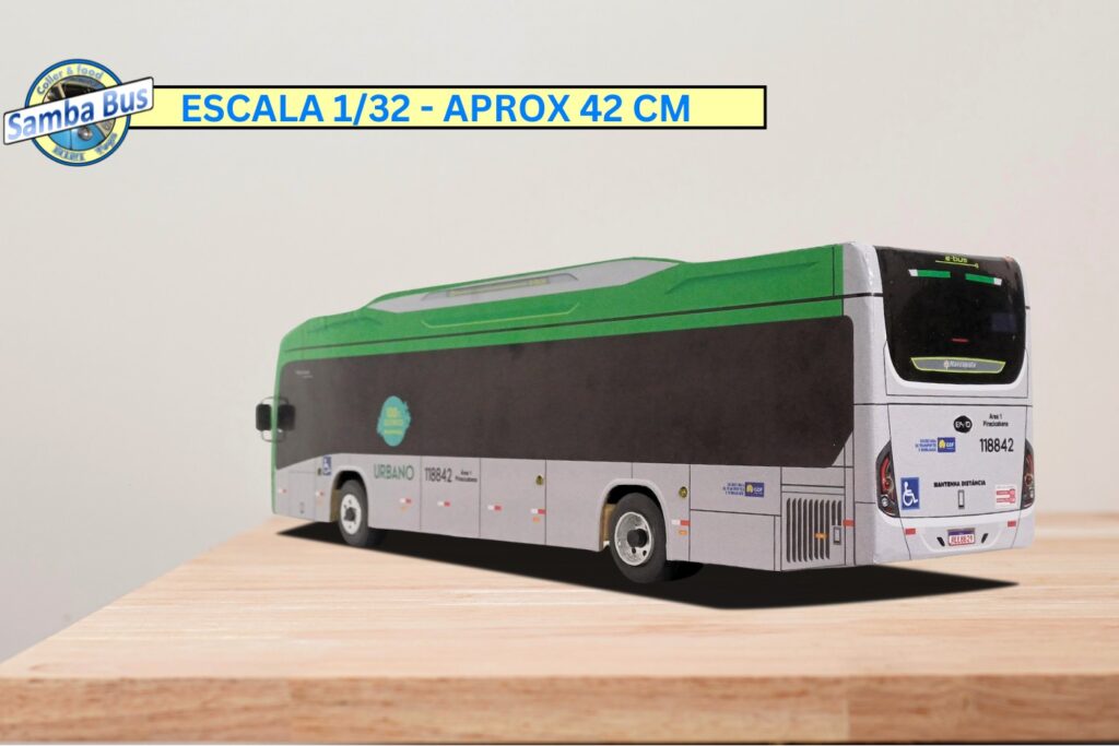 Em escala menor com tamanho 1/32 oferecemos a miniatura de ônibus com pneus em borracha, rodas impressas em 3D e pintura do ônibus produzida em vinil de alta qualidade, nossas miniaturas de ônibus são trabalhadas com valorização de cada detalhe do aspecto geral original de cada carroceria.
