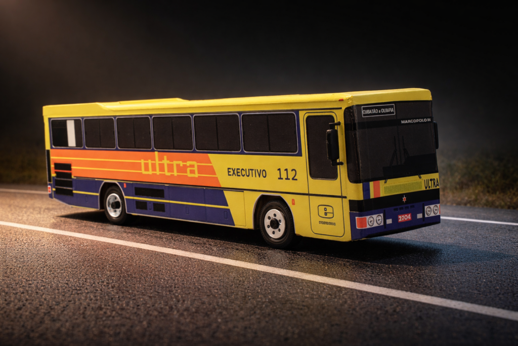 Para um grande apaixonado por ônibus, recriamos uma Miniatura de Ônibus Viação Ultra Marcopolo 3 em escala 1/32 de um dos modelos de ônibus mais icônicos que operaram no transporte municipal da cidade de São Paulo.